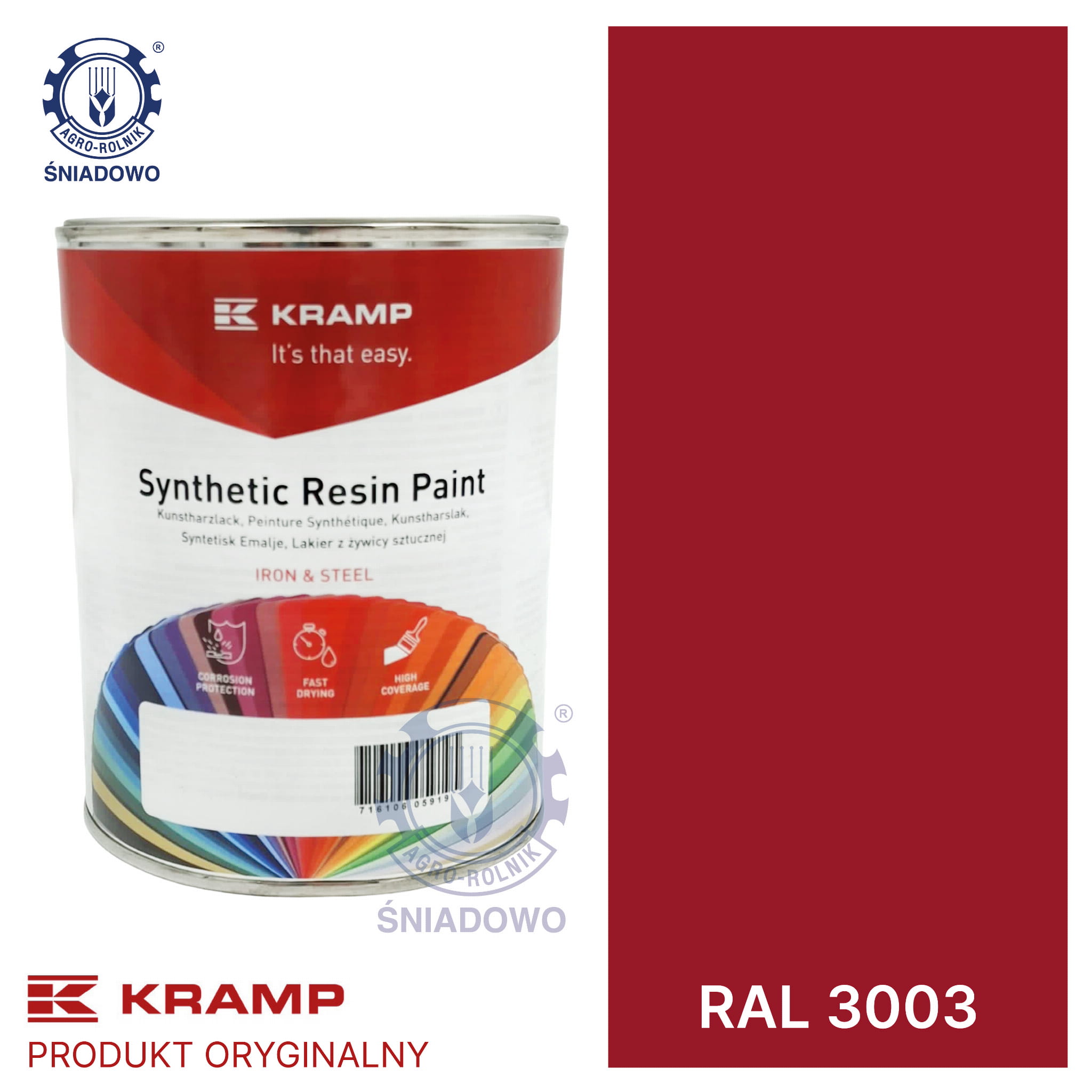 Lakier do maszyn RAL, 3003 rubinowy 1 l KRAMP