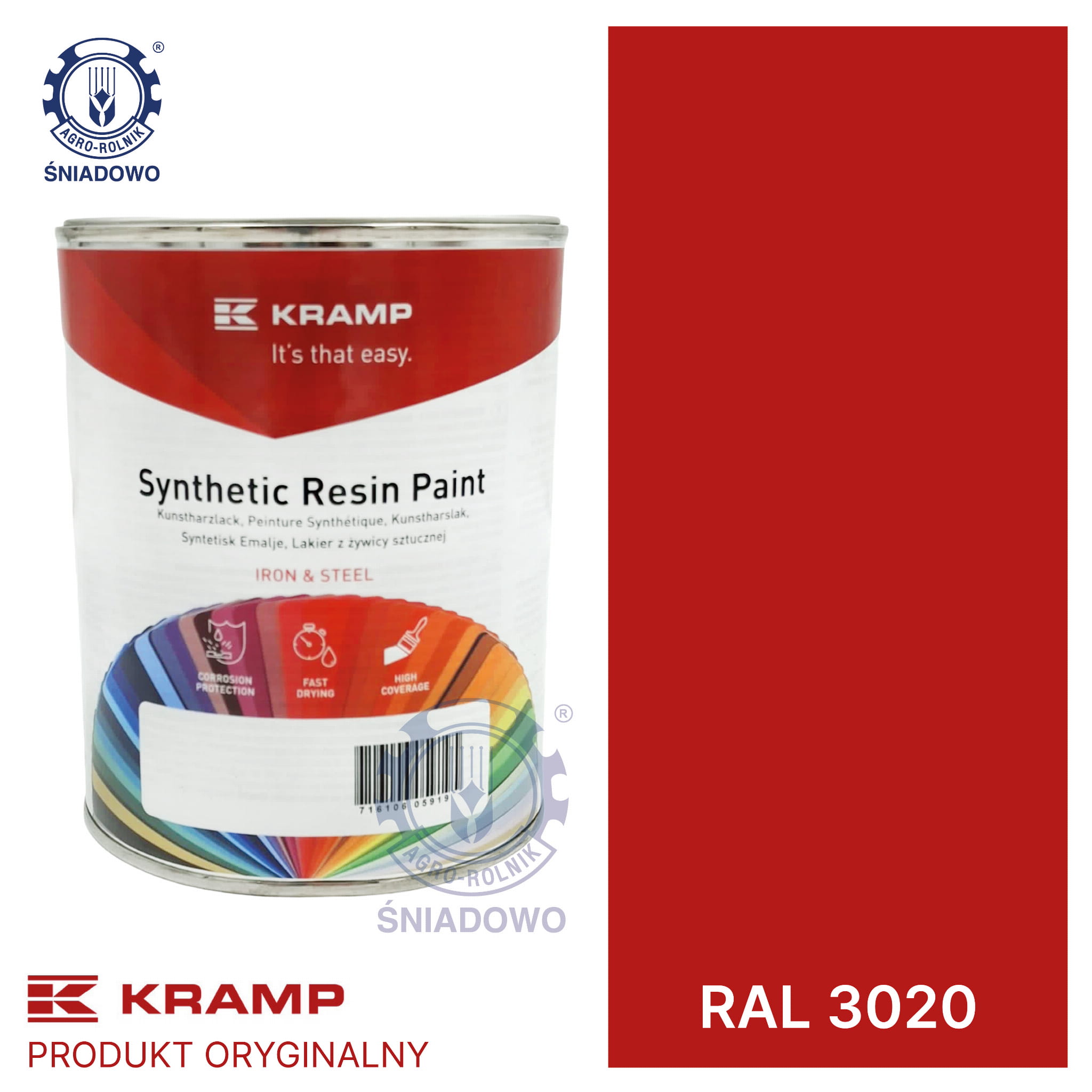 Lakier do maszyn RAL, 3020 czerwień kubańska 1 l KRAMP