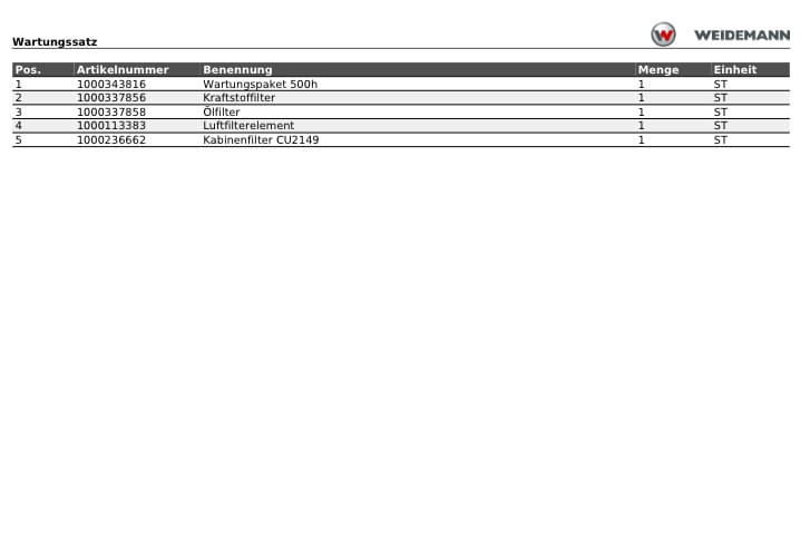 Zestaw serwisowy filtrów 1000343816